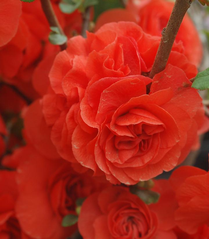 Leave it to Proven Winners®/Color Choice® plants to take a nice flowering shrub and make it great. Double Take Orange™ does just that by taking the common Quince that filled the landscape with early color but unwanted, painful throns and messy fruit and makes it into even more of an early spring color bomb while removing all the things that bugged you about your ‘old school’ Quince. Gone are the thorns, gone is the fruit and gone are even the flowers as you remember them replaced by HUGE, silver dollar sized, ruffled pink-orange flowers that line the smooth, thornless branches of this vigorous, rounded, spreading shrub. These camellia-like blooms begin to open in early to mid April and soon cover the branches giving you a show that other Quince can only dream of. Plant this easy care beauty in a half to full day sun location. It’s deer resistant, will tolerate pruning well and will look outstanding as a single specimen or grouped to form an unforgettable flowering hedge.