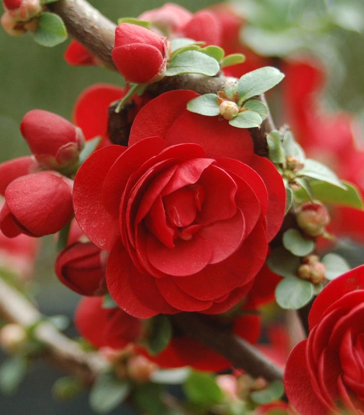Description: Big dark red double flowers Bright spring color Good cut flower Thornless Deer-resistant Heat tolerant Drought tolerant Great cut flower