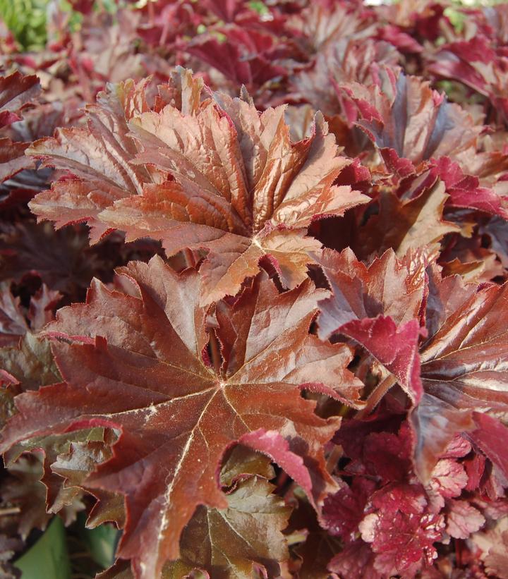 Some plants just have presence in the garden and this American Beauties Coral Bells has presence that will make the garden jump. ‘Bronze Wave’ is bigger than most Heuchera so its beefy size automatically makes it a focal point and its individual leaves with their huge, 6-8″ diameter add to it with their dark, bronze-purple color that makes it impossible to ignore. In fact, you’ll find that you aren’t the only one that can’t take your eyes off this plant… hummingbirds love it when its spikes of pinkish-white flowers open in late May and continue into early July. They’ll visit often and so will you! ‘Bronze Wave’ will thrive in partial shade but tolerates full sun well, along with being extremely drought tolerant. Plant it in groups and give your garden that presence that will be remembered by all who pass by.