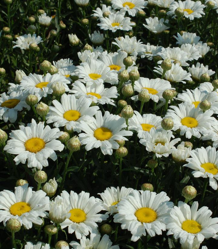 Unlike many Shasta Daisies where the flowers are thrilling but the plants are less than desirable, Daisy May™ is a well behaved, compact and perfectly easy plant to grow and keep in any sunny garden location. And, oh yes, its blooms are spectacular with flowers that are all you would ever want as a dyed in the wool daisy lover! Deep green, long, serrated foliage forms a dense mound that gives rise to countless bud bearing flower stems that rise nearly a foot above the foliage in early June. Flowers begin to open soon after showing off golden yellow centered flowers with pure white rays that will keep on coming well into August. With their long stems and happy faces, how could any daisy lover resist cutting them for long lasting beauty in the house? That in itself is a good reason to plant a group of these easy to grow, showy plants that want only adequate moisture and well drained soil to become your favorite Shasta Daisy.