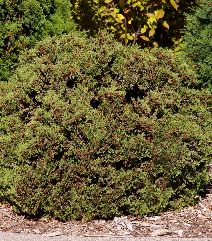 Description: Easy Care Evergreen! Scale-like foliage on fan-like fronds Dense, flattened, globe-shaped evergreen Slow-growing plant Great in smaller landscape spots or group border plantings