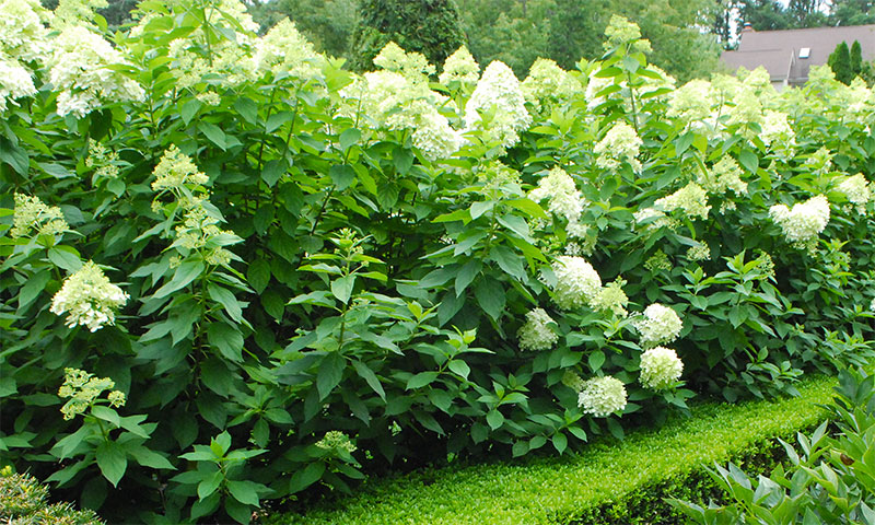 This unique panicle hydrangea revolutionized landscaping across North America. Huge, football-shaped flowers open in an elegant celadon green that looks fresh and clean in summer’s heat. The blooms age to an array of pink, red, and burgundy which persists through frost for months of irresistible flowers. You can use ‘Limelight’ hydrangea just about any way you can imagine: as a showy flowering hedge, to screen off air conditioners, as an attention-getting specimen, in containers, flower gardens, or anywhere around your home. A long-time favorite of professional florists, it also makes an excellent cut flower, fresh or dried.